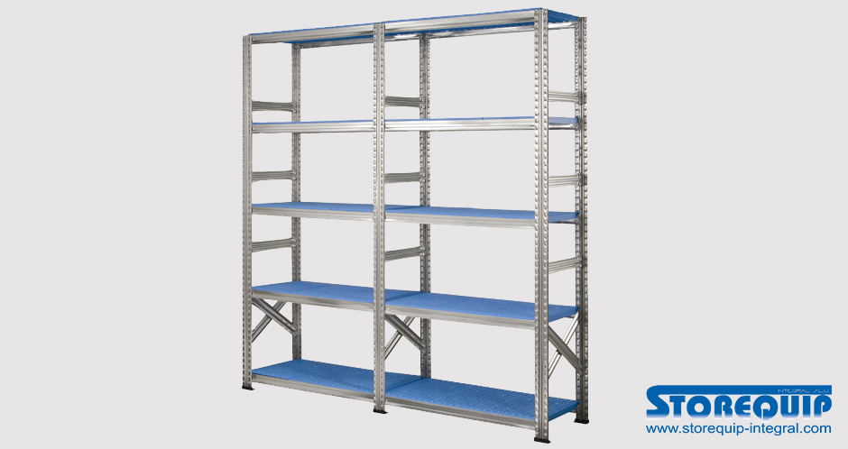 Estanteria para cargas manuales fabricada en chapa pre-galvanizada de gran resistencia y durabilidad permitiendo su instalación en todo tipo de ambientes, comercios y almacenes, incluyendo exteriores, cámaras refrigeradas, cámaras de conservación y congelación.